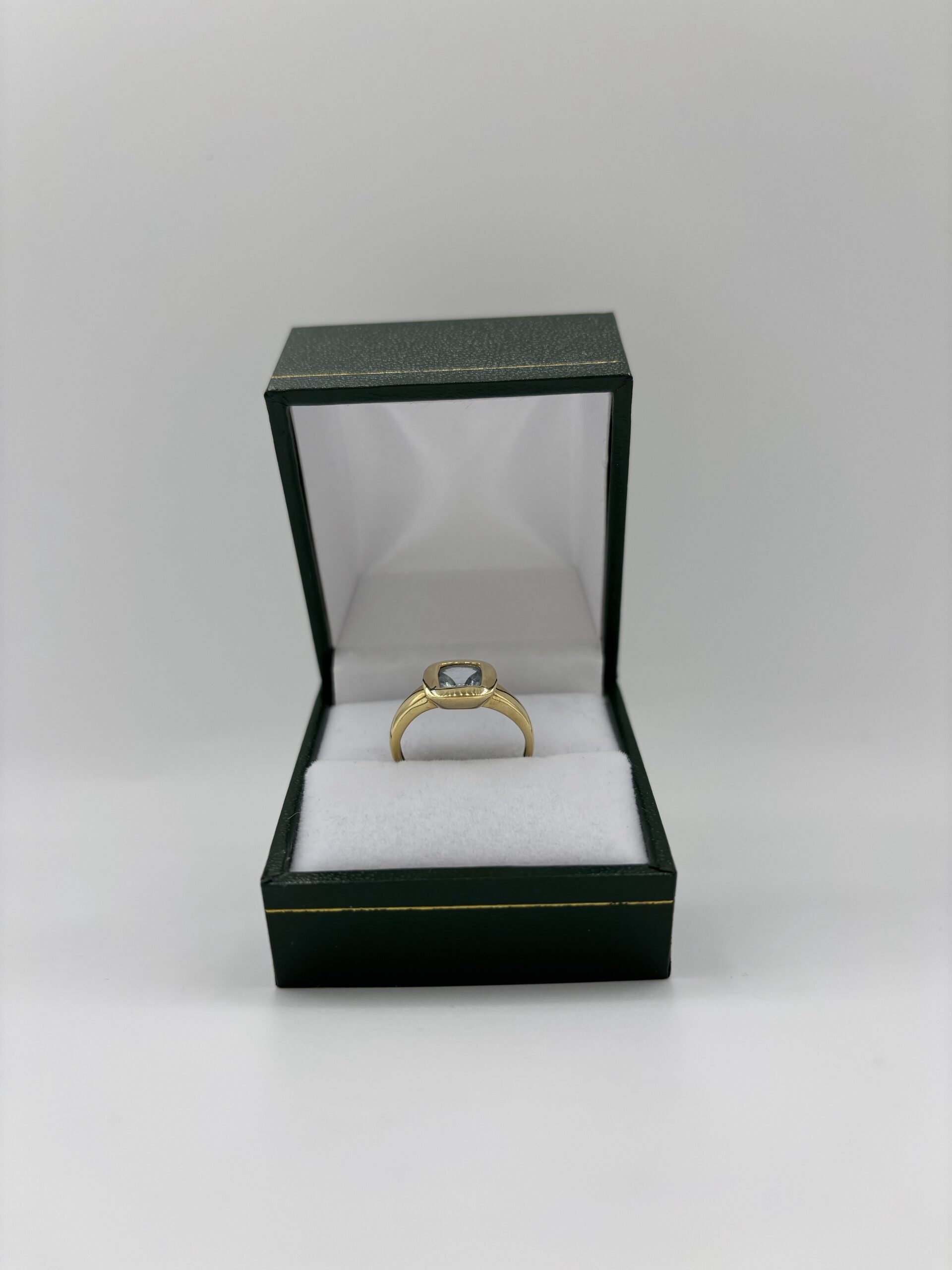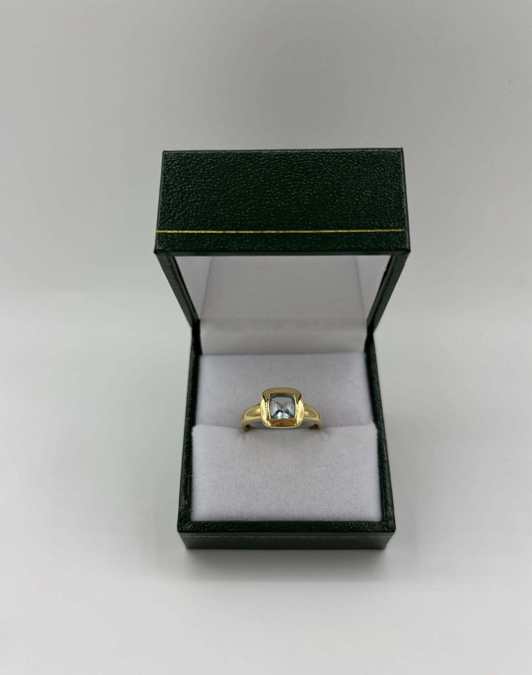 Bague en or jaune 750 avec une aigue-marine sertie clos