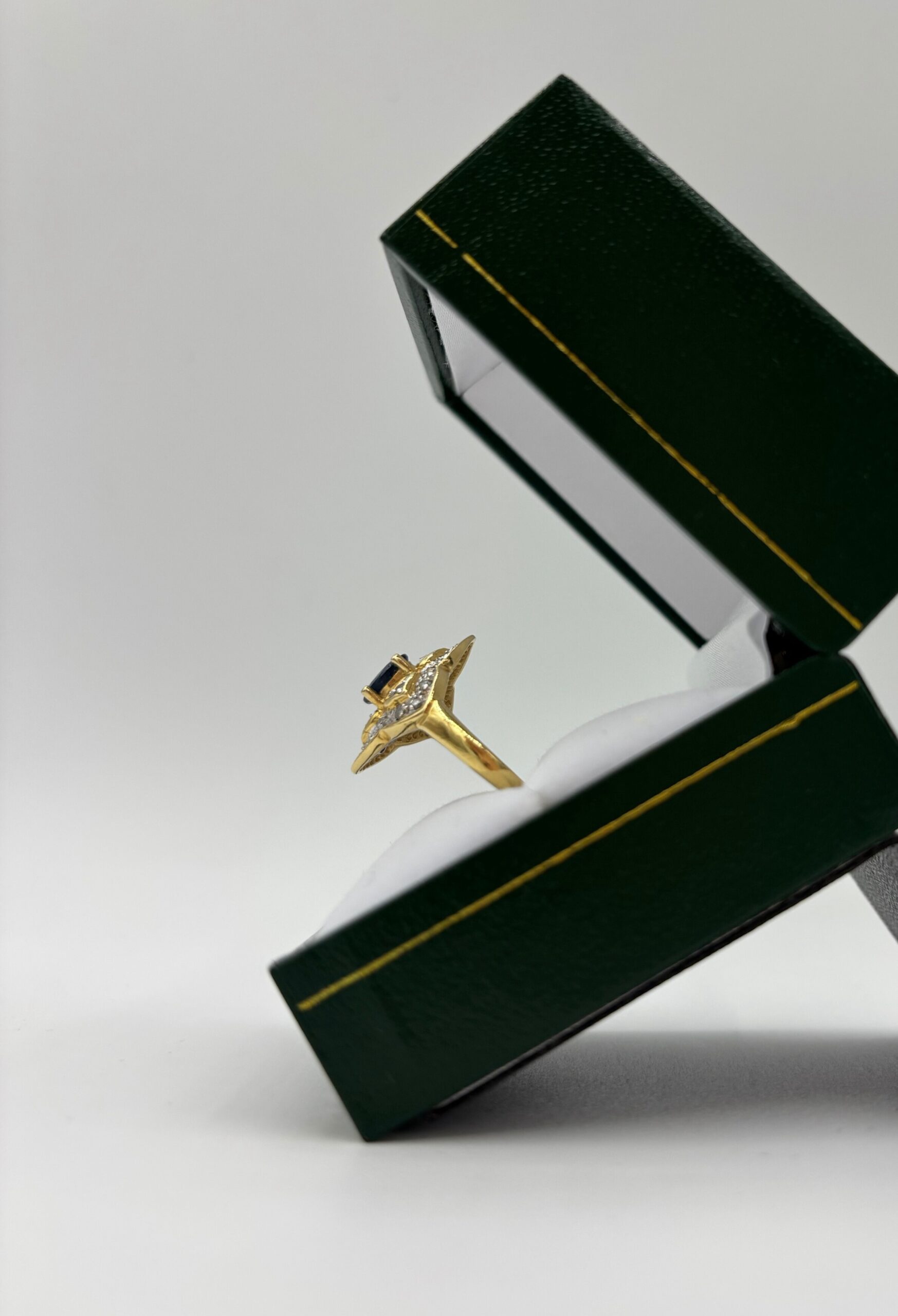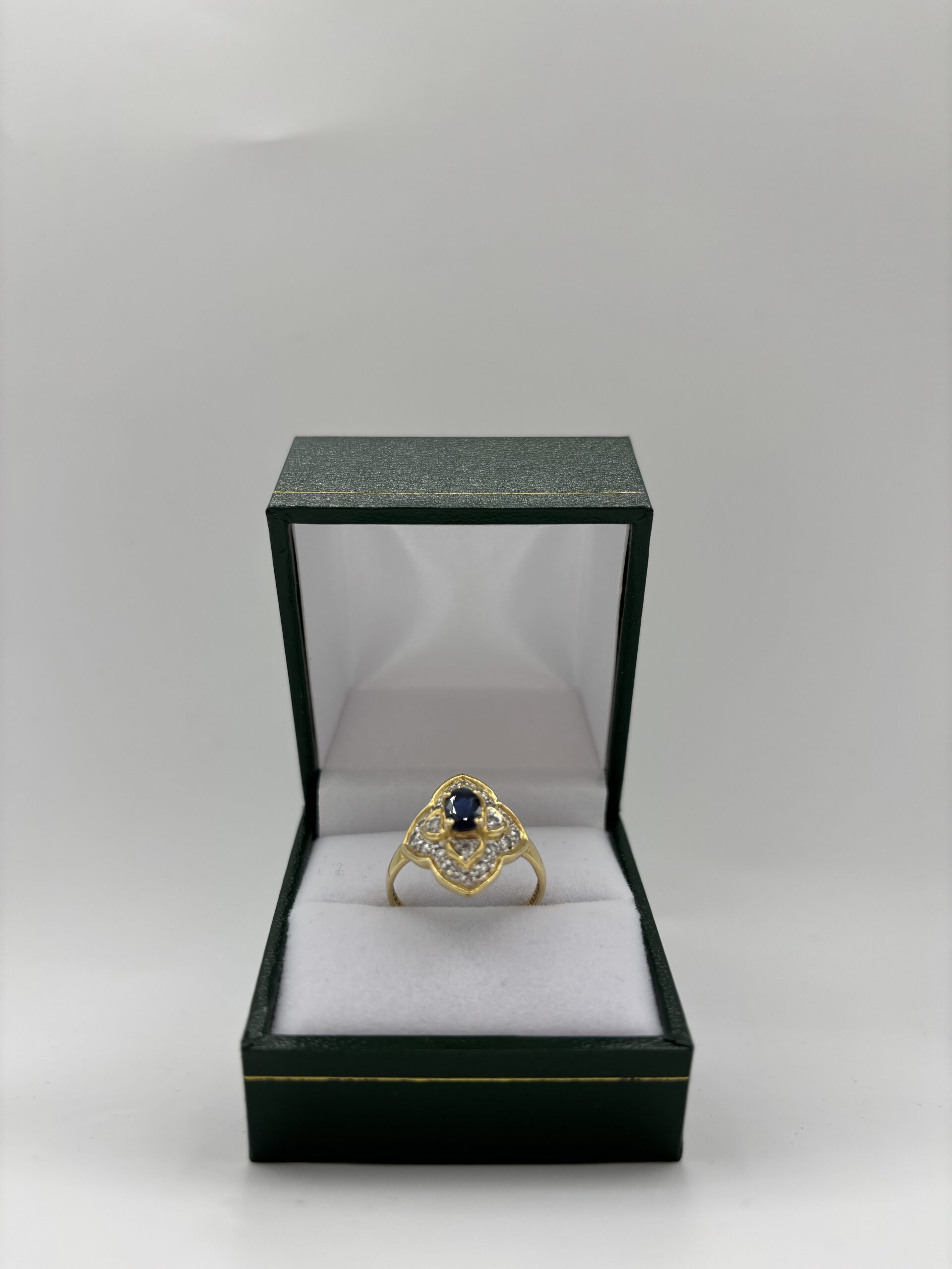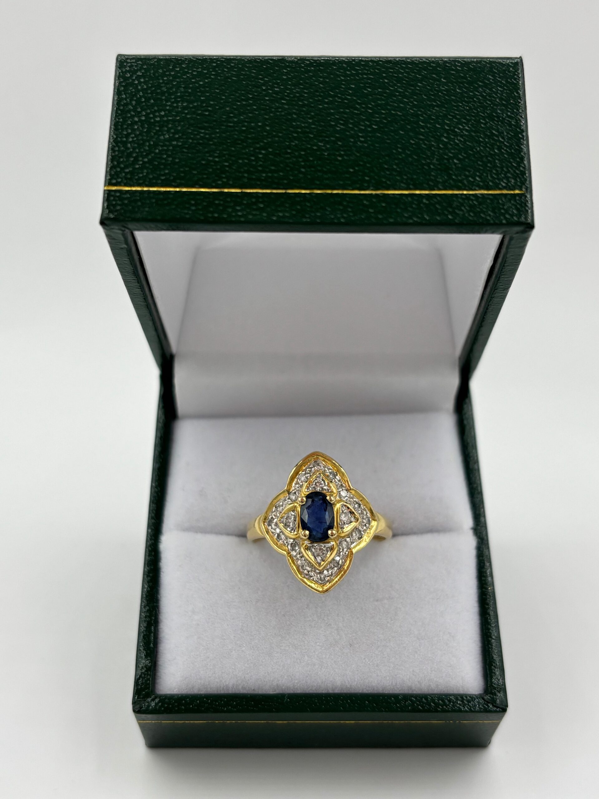 Bague fleur en or jaune 750 saphir sertie griffe et d’éclats de diamants