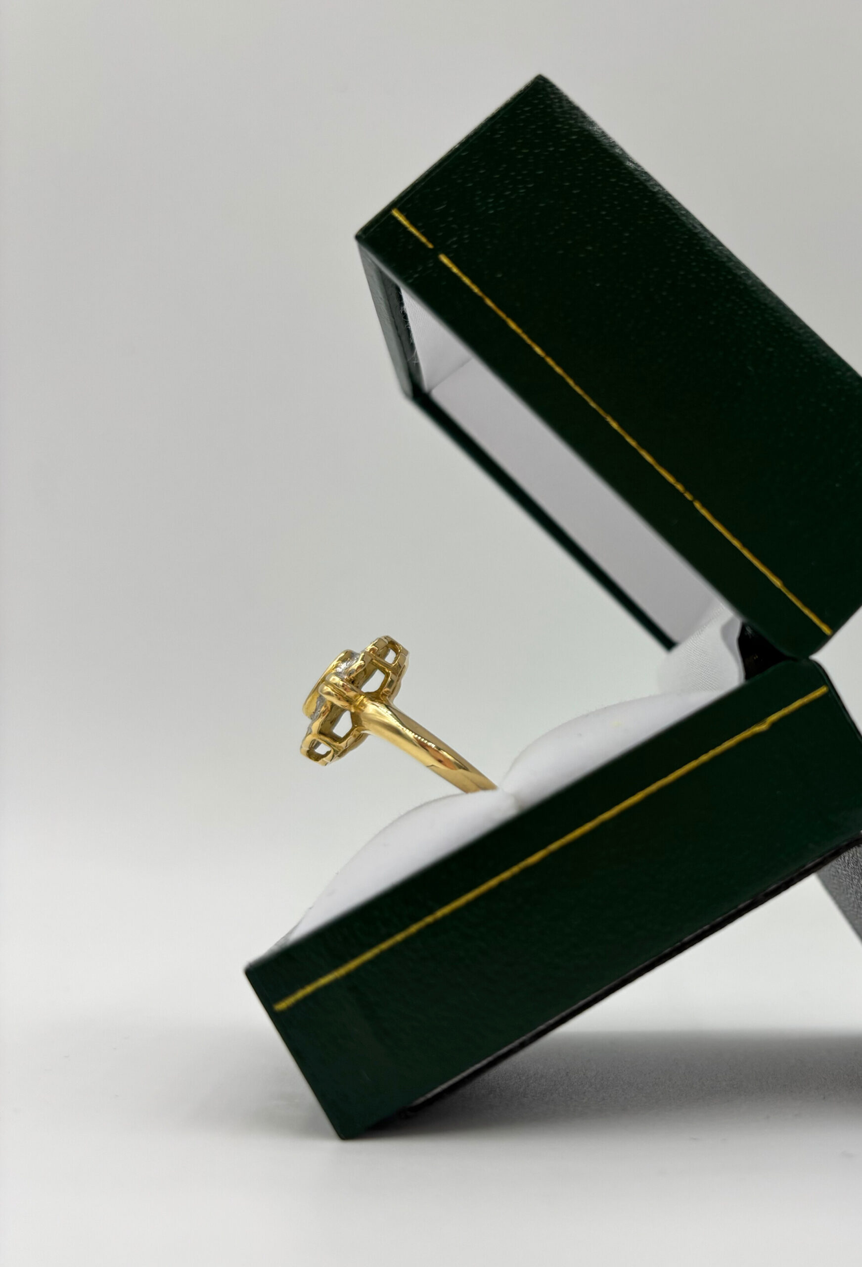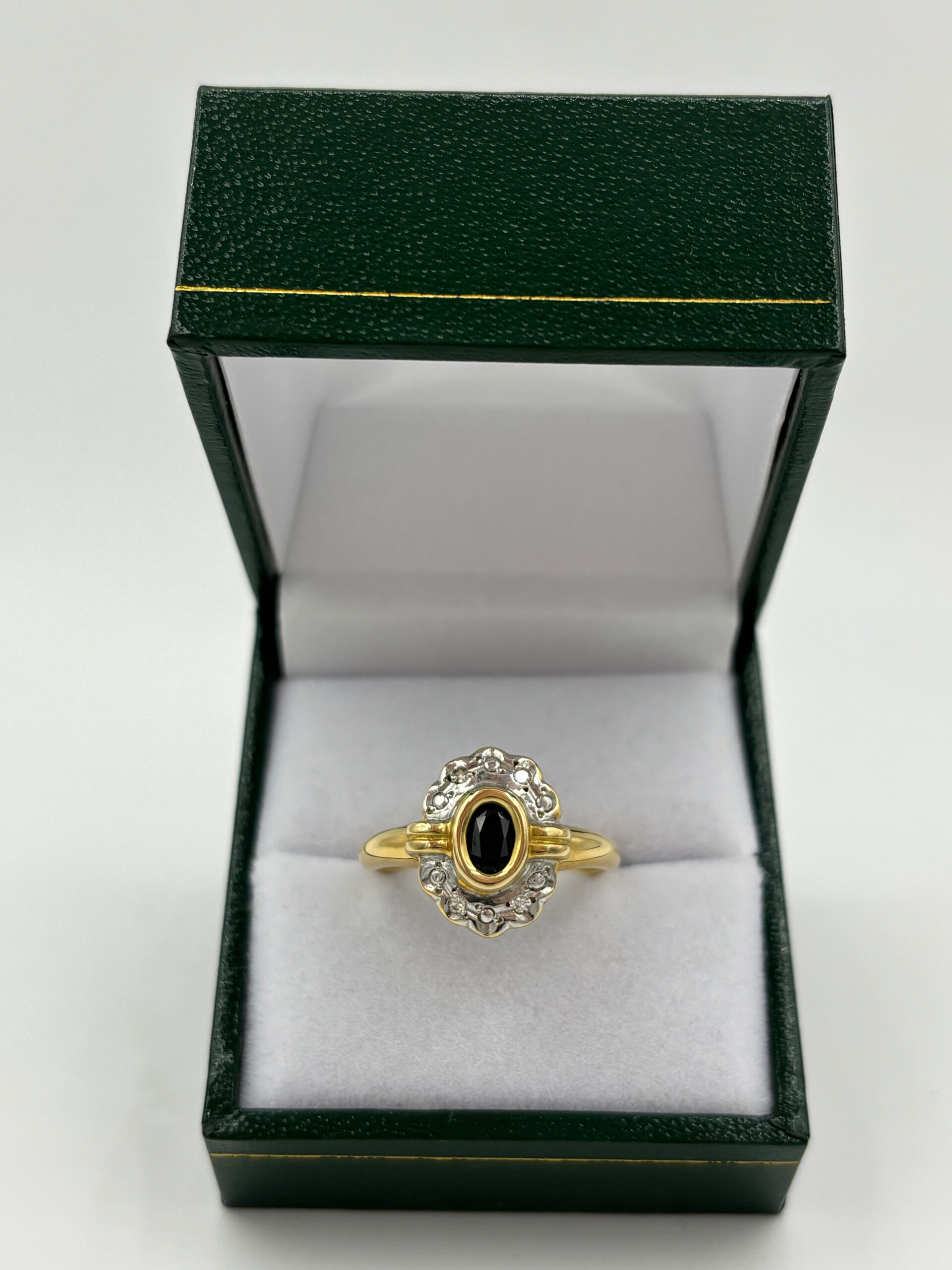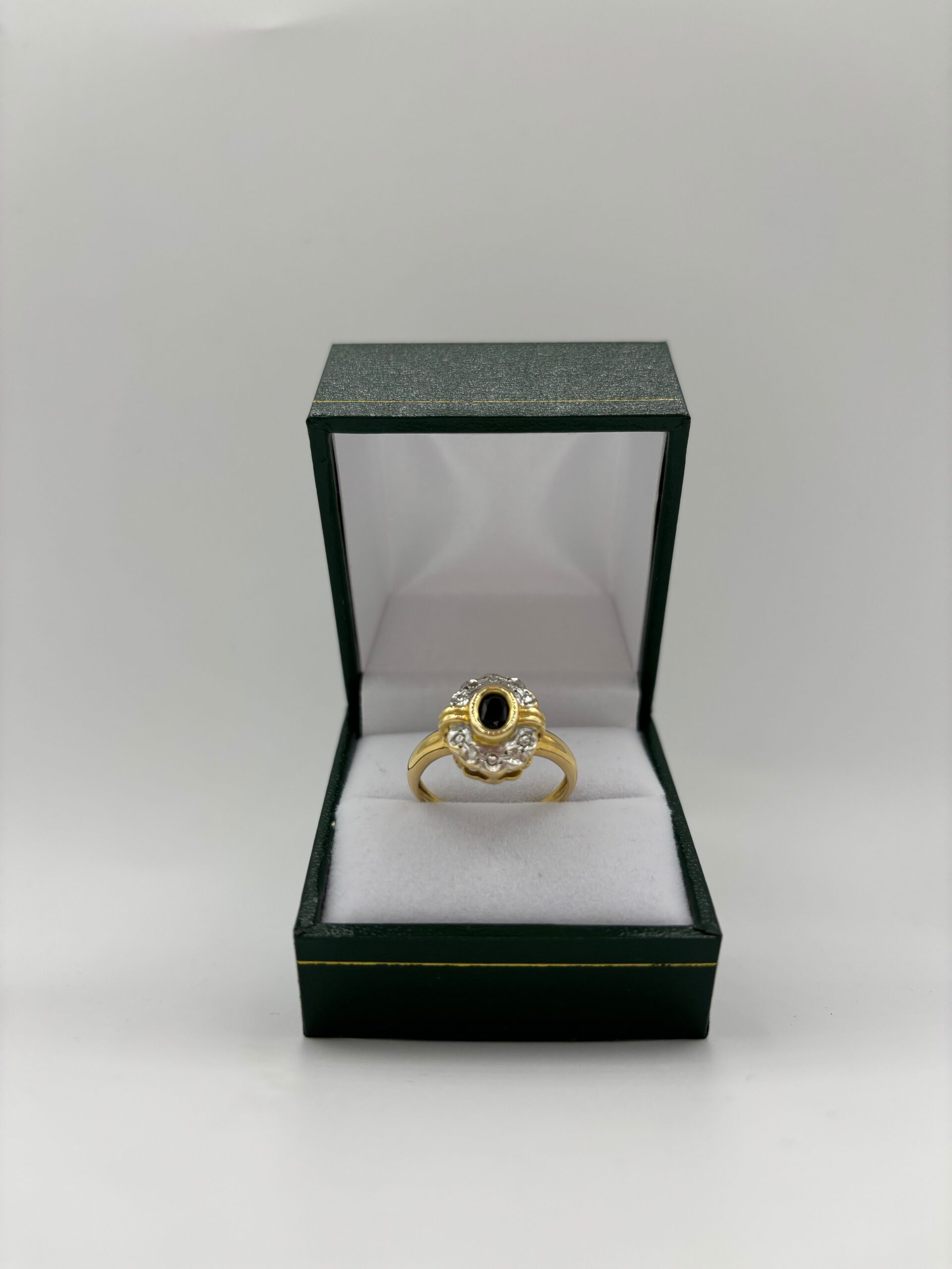 Bague en or deux tons 750 saphir sertie clos et éclats de diamants