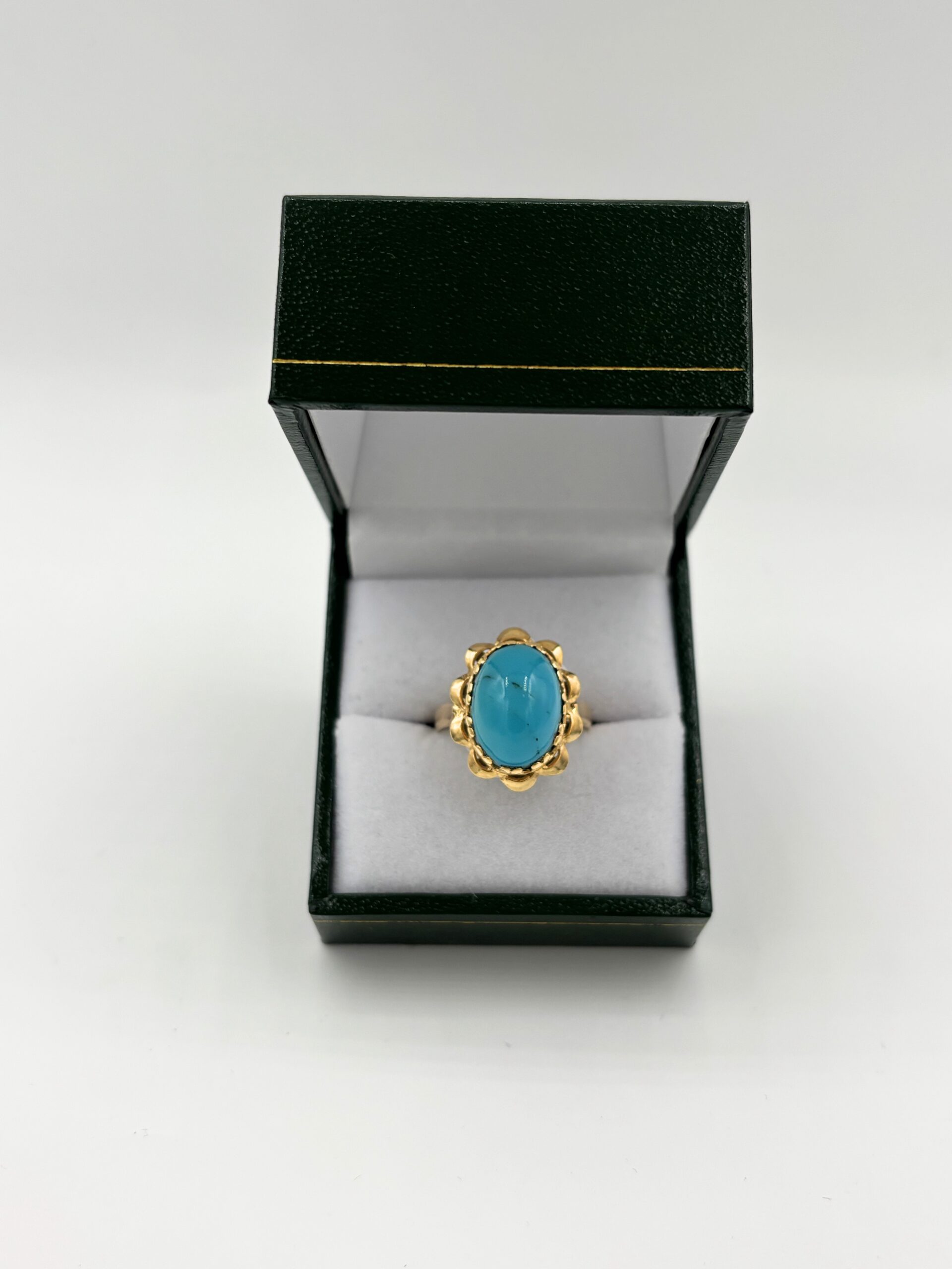 Bague en or jaune 750 sertie d’une turquoise de 3 carats