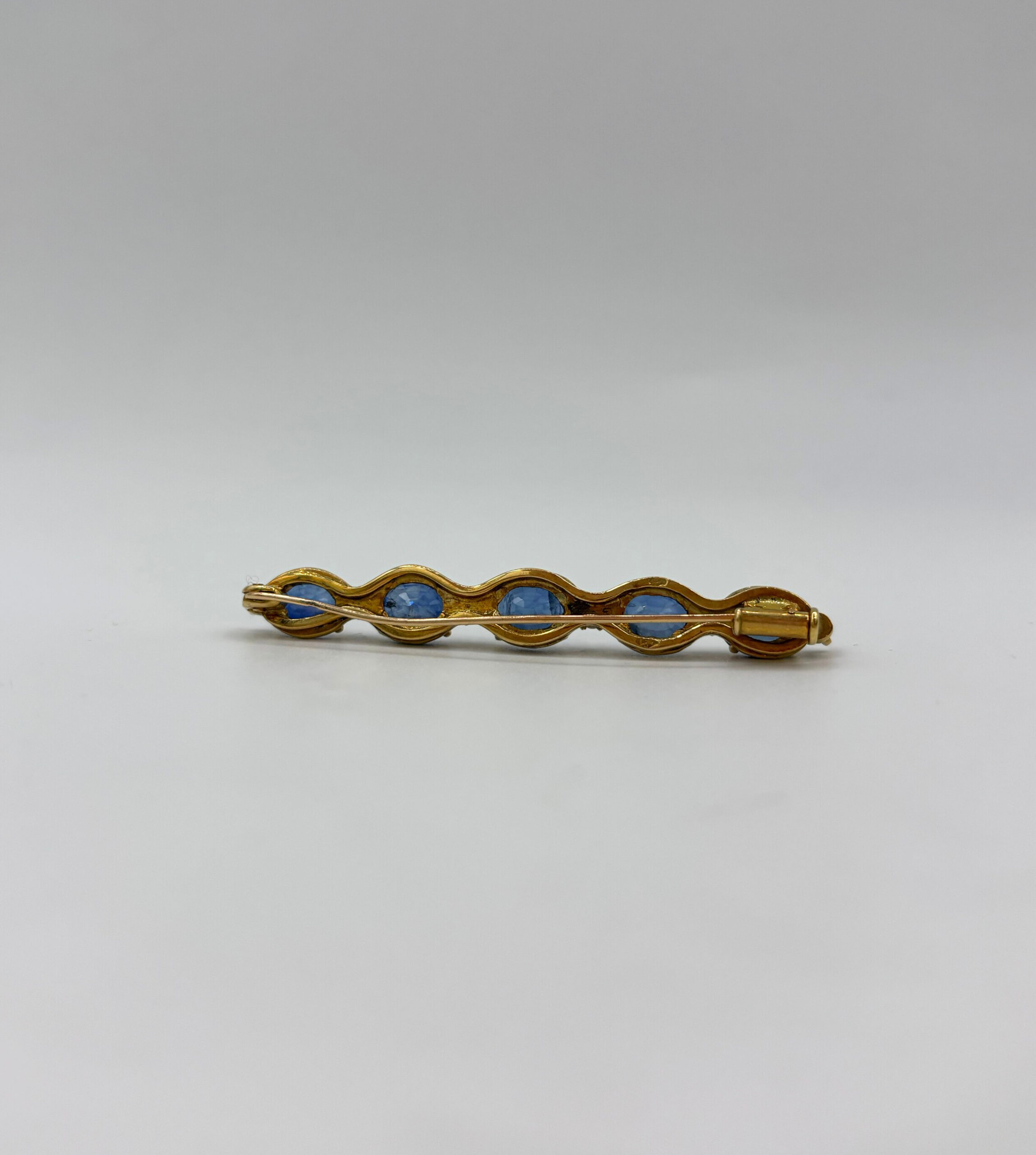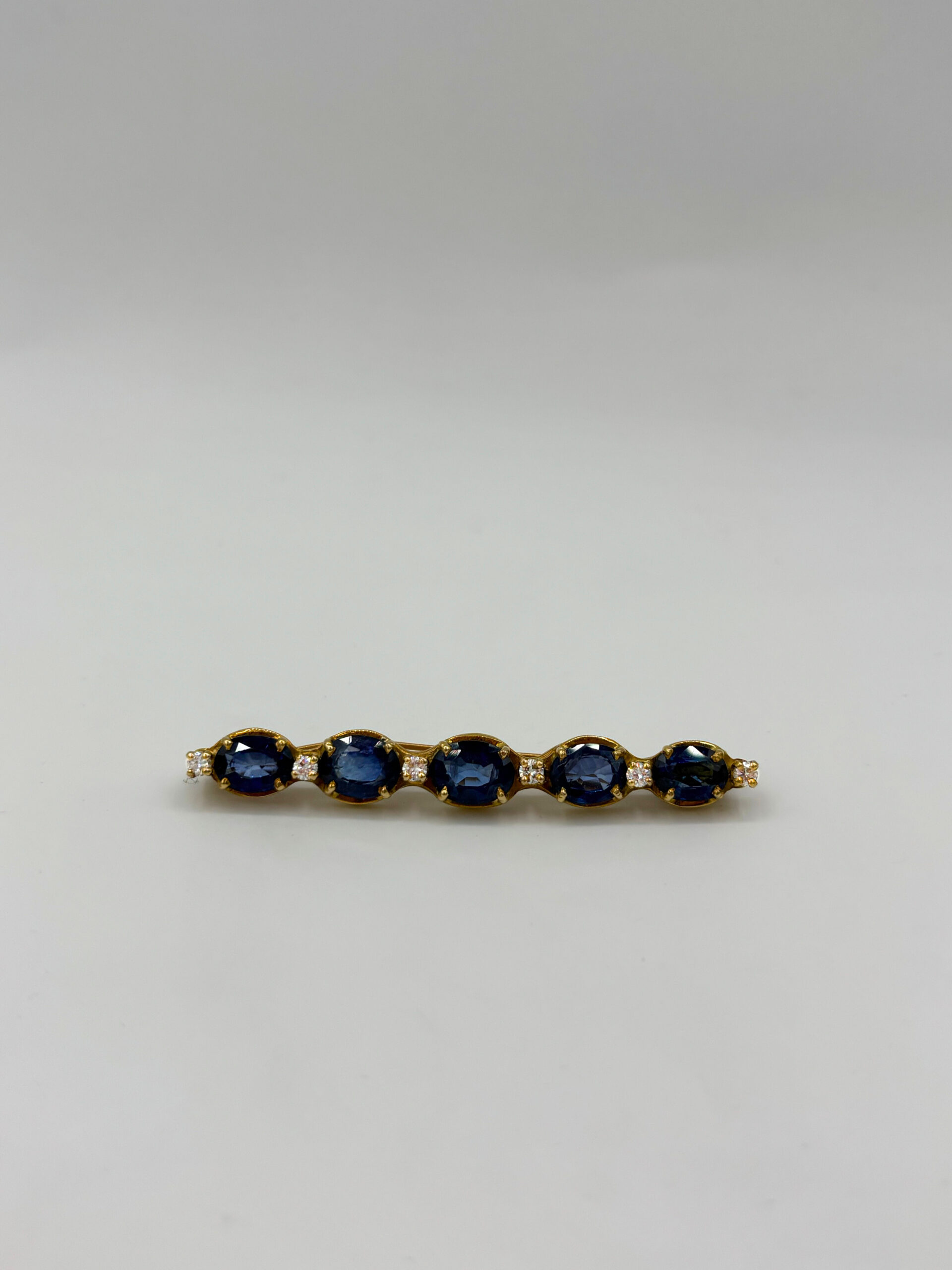 Broche en or jaune 750 5 saphir et 6 petits diamants